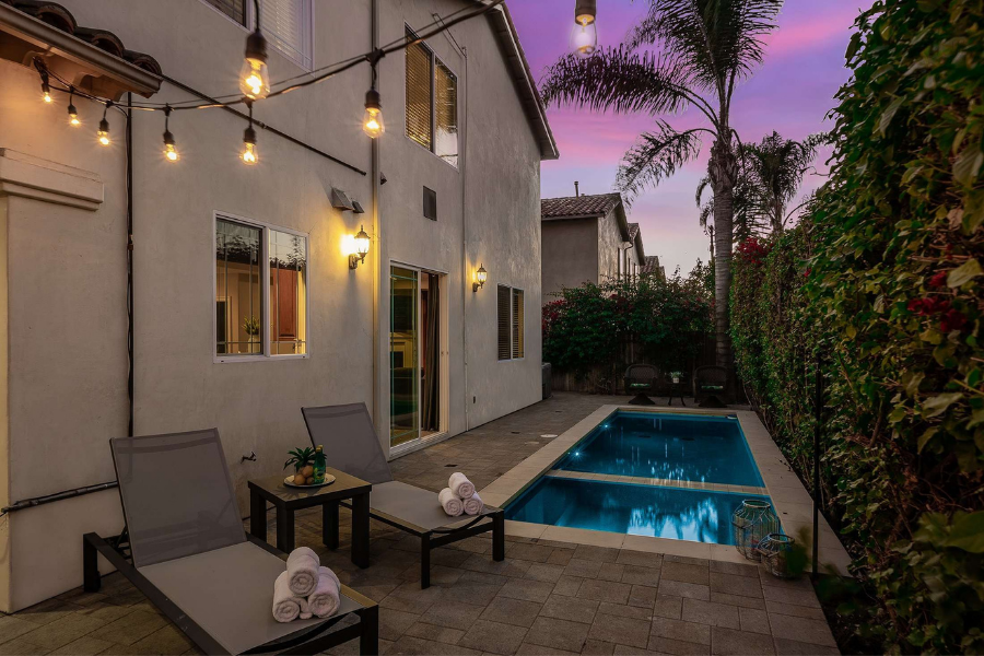 The manicured backyard and lush greenery is the perfect place to relax in the luxury spa. BBQ meals on the patio enjoy California sunsets while you dine. In addition to these amenities are high speed internet and cable with HBO. Large kitchen with new and easy-to-use appliances to satisfy your culinary desires.