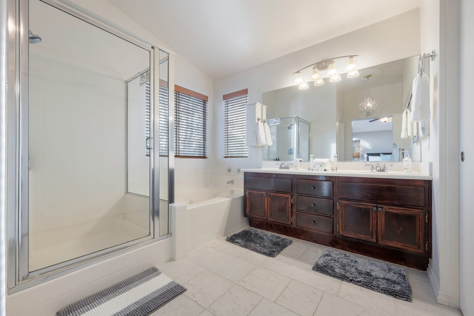 Retreat to one of four beautifully decorated bedrooms at the end of an exciting day. Each room is designed with comfort in mind, featuring soft bedding and plenty of storage space. The master suite includes an en-suite bathroom with dual sinks and a luxurious soaking tub—perfect for unwinding after a long day of fun.